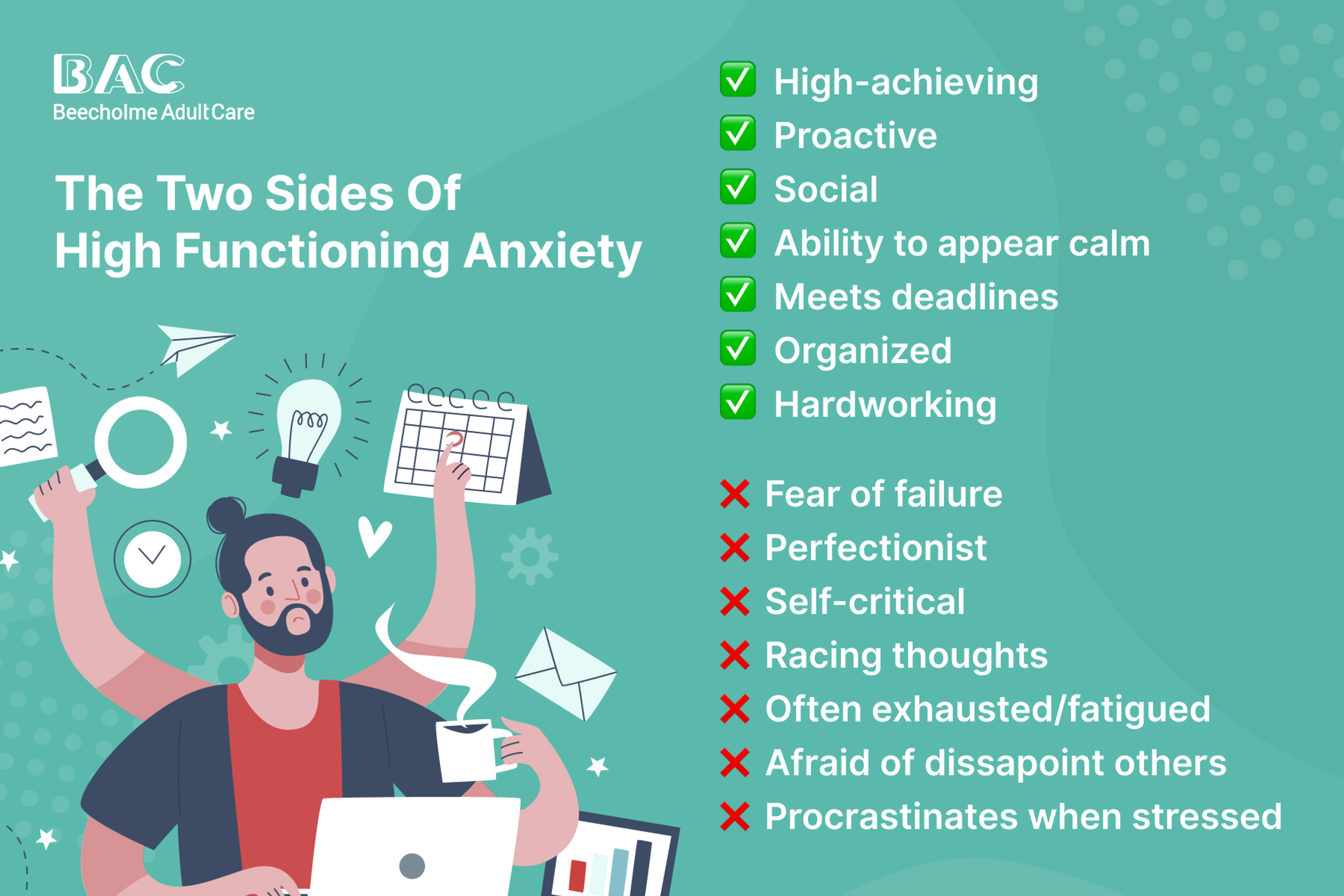 All of the traits mentioned above seem desirable and something which would lead to success but people don’t always know that these actions are caused by anxiety. They fail to understand how it can lead to such positive habits. Some of the negative characteristics of high functioning anxiety are: