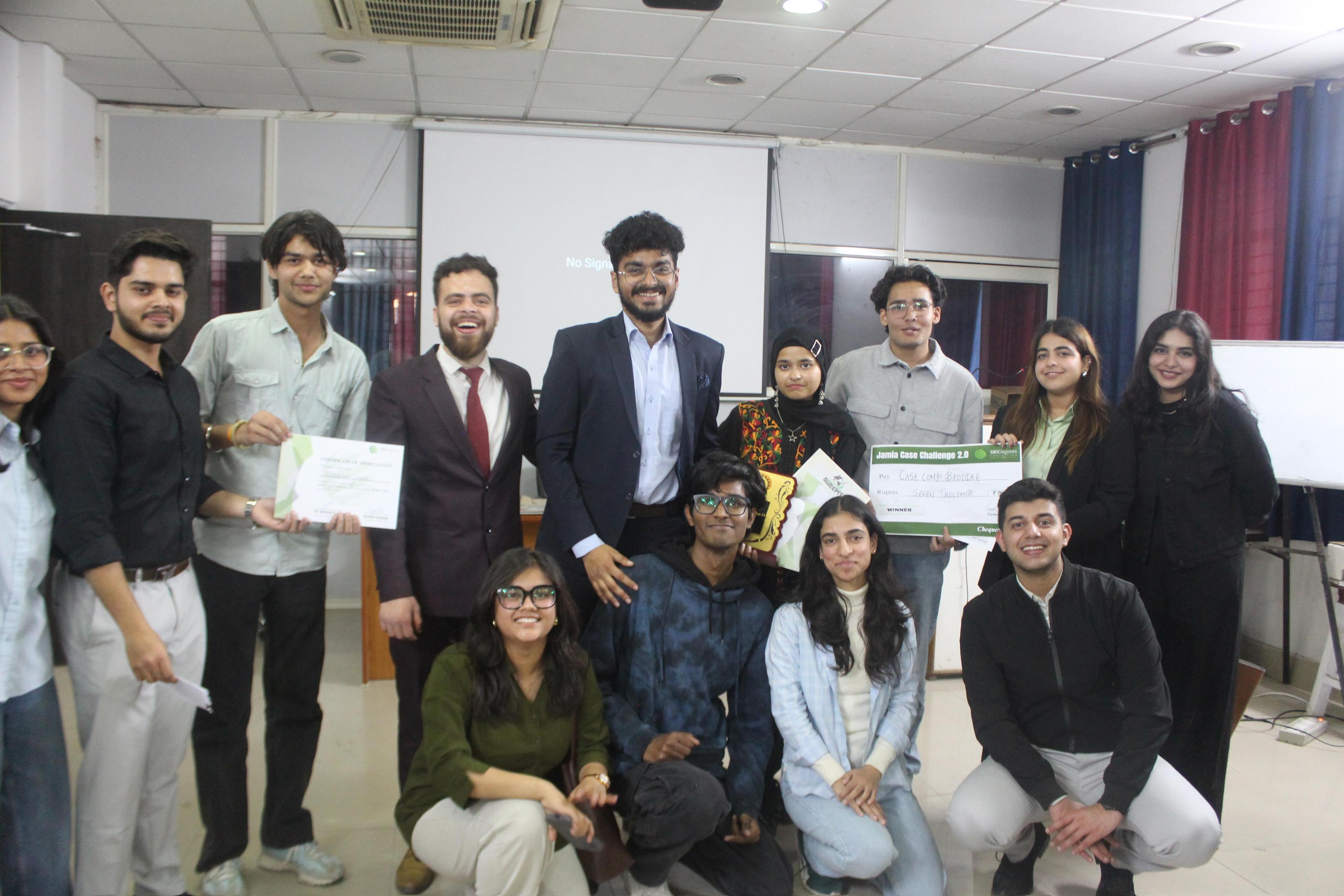 The competition attracted over 350 registrations from over 30 departments in Jamia and after a highly competitive selection process, only 15 teams were selected for the final offline round. Participants were presented with a real-time business case with multiple deliverables, requiring them to develop innovative solutions within a limited timeframe. Before releasing the business case, an exclusive masterclass was held for all the participants to train them on business problem-solving and case study competitions on 7th Feb at the UPC Training Room.