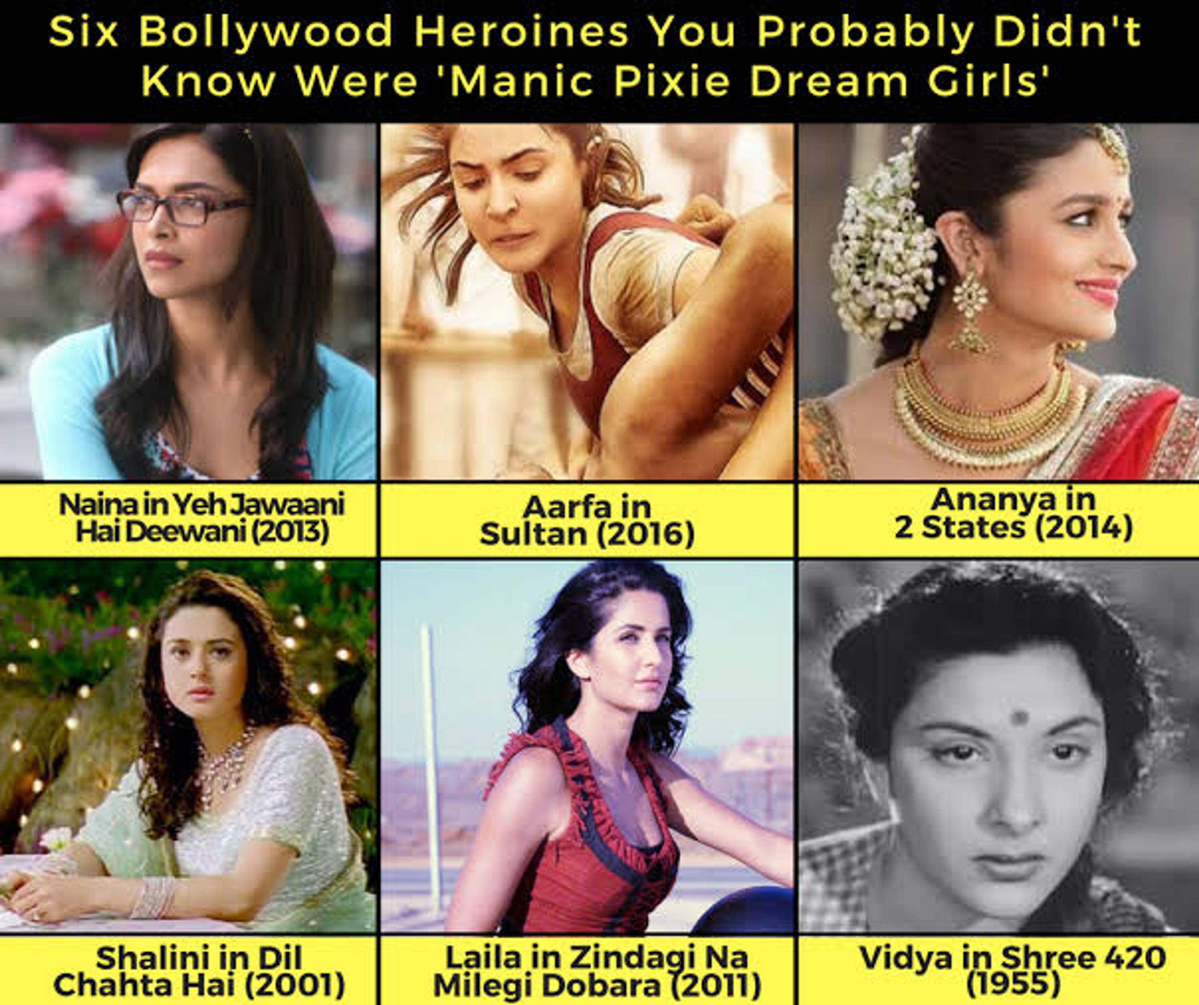 The manic pixie dream girl has been quite popular in Bollywood as well as in films abroad. She is often portrayed to be conventionally attractive, reflects an enchanting charisma from the get-go and has a cheerful and bubbly persona. Furthermore, she is outgoing and fun to be around. She is generally quirky and fits the ‘I am not like other girls’ cliché, as her speech and actions suggest. She belongs to the creed of YOLO.