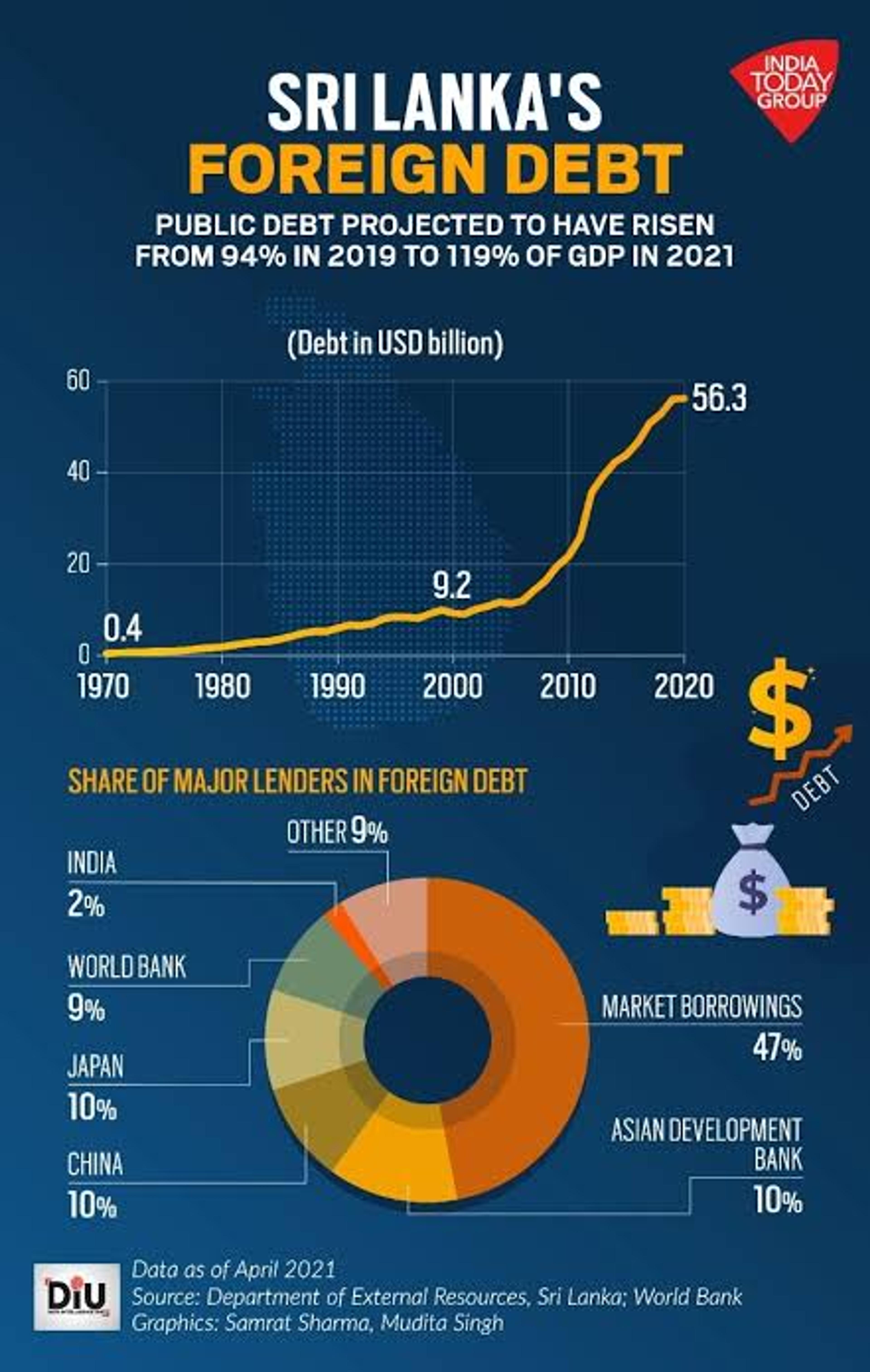 “Sri Lanka is a classic twin deficits economy,” said a 2019 Asian Development Bank working paper. Twin deficits indicate that the national expenditure of the country overpasses its national income and the production of its tradable goods and services is meagre. The ongoing crisis was spurred by deep tax cuts assured by Rajapaksa in the midst of an election campaign in 2019, held months prior to the COVID-19 pandemic that further wiped out Sri Lanka’s economy.