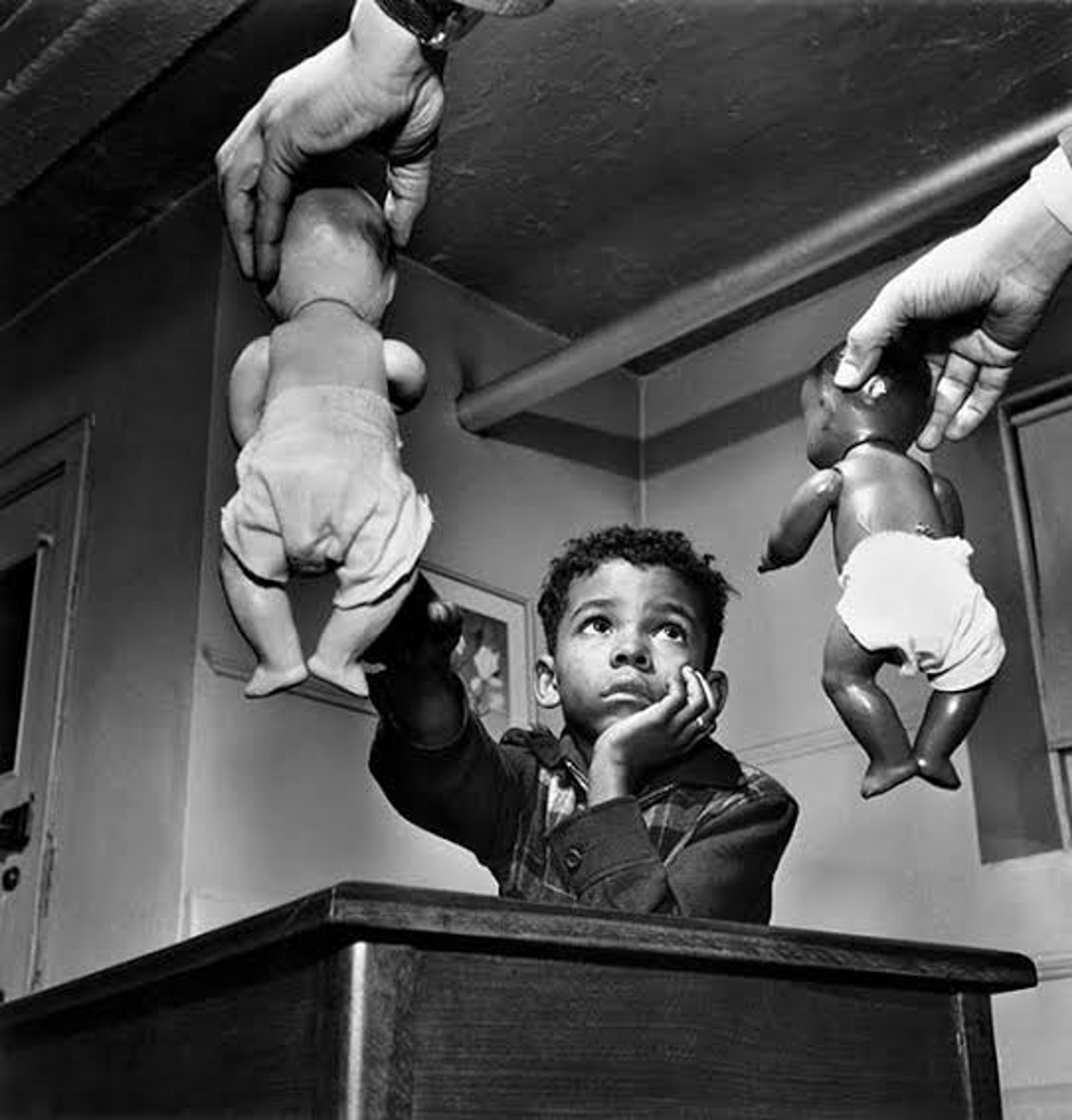 The experiment was originally known as ‘the doll test’ and the study was titled ‘Emotional Factors in Racial Identification and Preference in Negro Children’, published in the ‘Journal of Negro Education’. The study was done among African-American children attending segregated schools in Washington, DC versus those in integrated schools in New York. Among the children, 134 were from the south that went to segregated schools and 119 were from the north that went to mixed schools. The children were presented with two dolls identical in all aspects except the color. One doll was black with brown hair while the other was white with yellow hair. The children were asked questions like: which doll is a nice doll, which doll is bad, which doll has a nice color, which doll would you like to play with, which doll looks like you etc. All the children preferred the white doll over the black doll when asked which one is nice, which one looks good, which one would you want to play with; while they chose the black doll when asked which one was bad and ugly. The reasons given by kids for choosing the white doll were “because he is white”, “because he is pretty”, “because he has two eyes”, “cause his feet, hands, ears, elbows, knees, and hair are clean”, and reasons for rejecting the black doll were, “because he is ugly”, “because he is black”, “because he looks bad”, “because he hasn’t got an eyelash”. When asked which doll looks like you, “two children run (sic) out of the testing room, uncontrollable, convulsed in tears” Clark said.