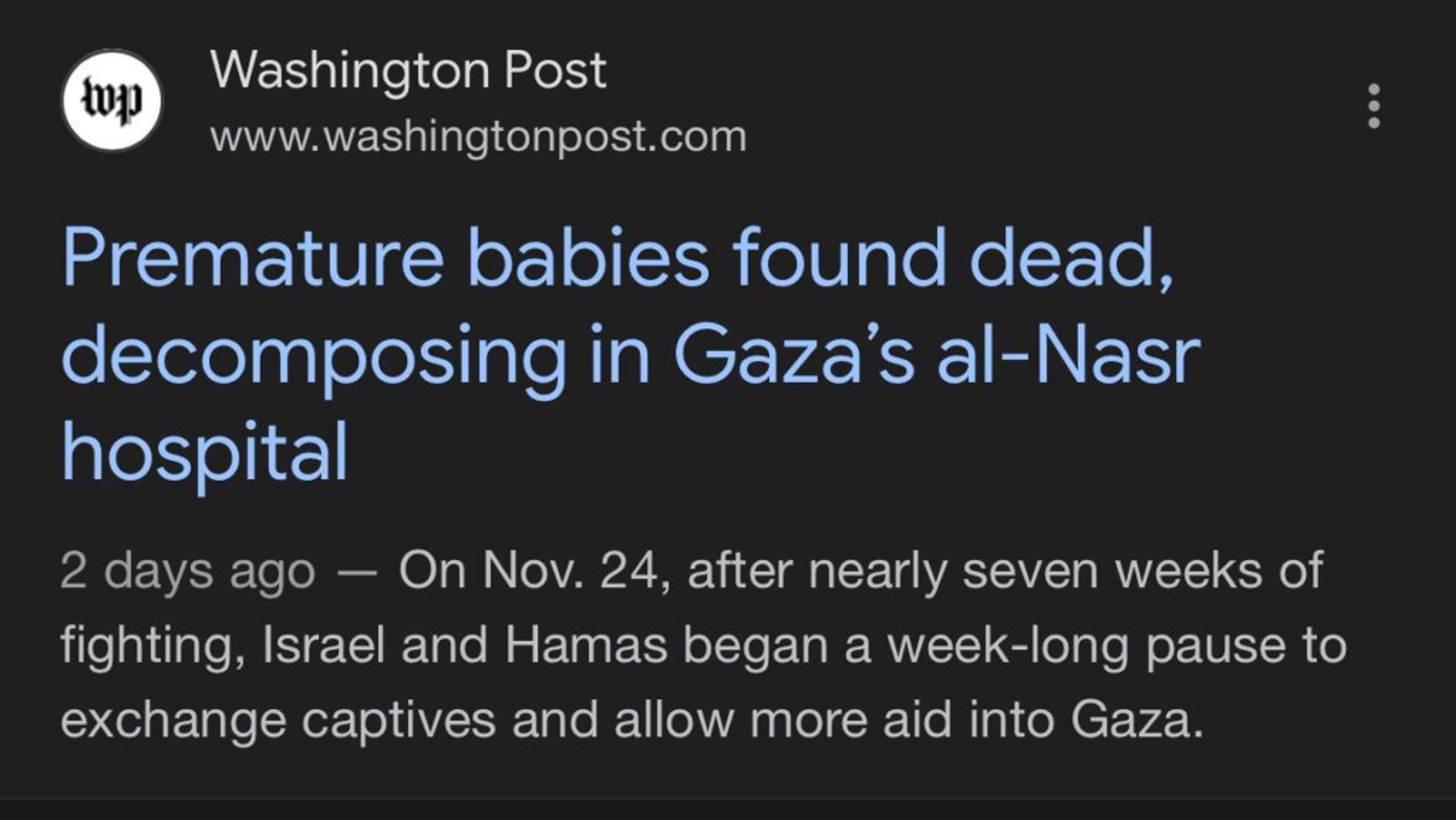 For example, this headline of the Washington Post – “Premature babies found dead, decomposing in Gaza’s Al-Nasr hospital” – creates a perception for the reader that they died not because of Israel’s total blockade on Gaza, but for some other, perhaps natural causes. Hundreds of other media outlets report killings of Palestinians in passive voice as “Died”, “found dead” and “feared dead” to cloak the aggressor and actor (Israel). However, when it comes to Israeli deaths, they don’t hesitate from making the perpetrator known and ensuring he is condemned.