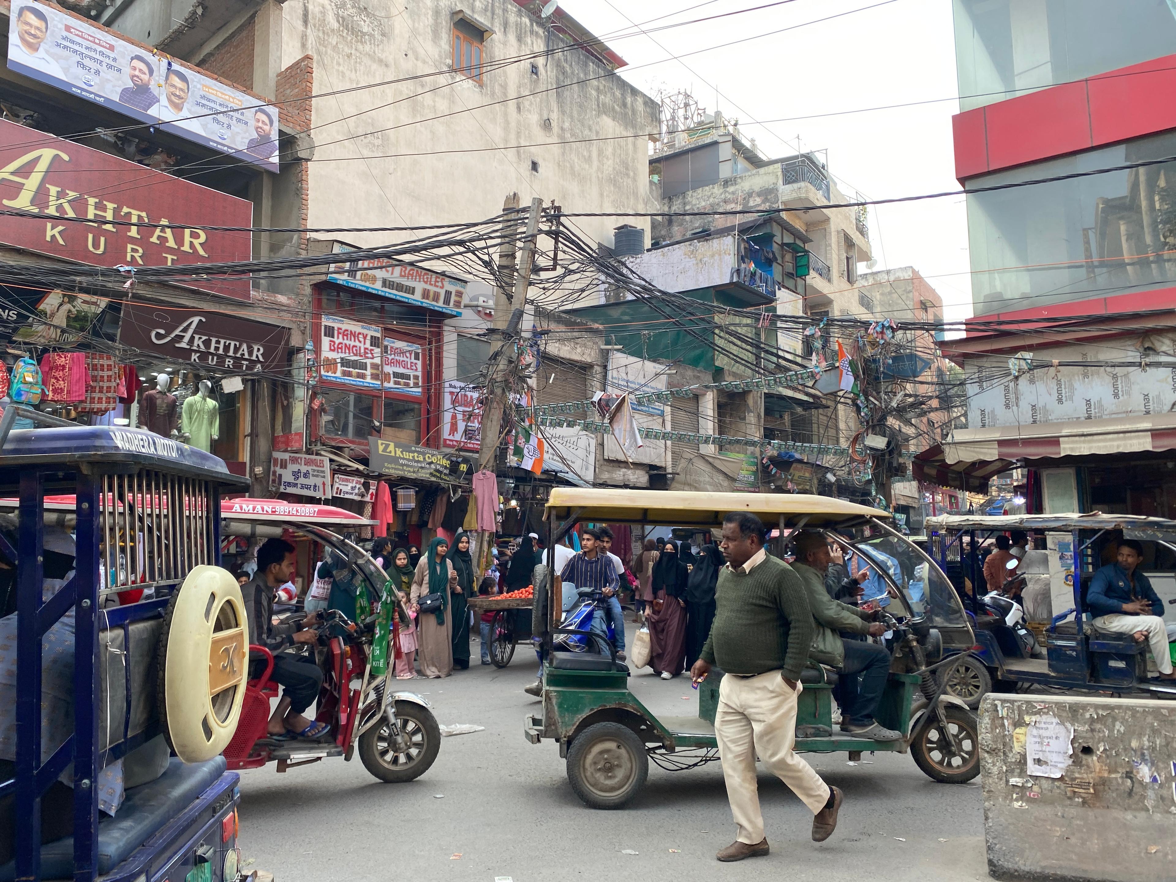 Rimsha, 24, works in a boutique in the bustling market where she faces difficulties due to lack of clean washrooms for women in the area. Despite this, she expresses her appreciation for the Aam Aadmi Party (AAP) government. For her, “Kejriwal is the best.” When asked about the religious symbols in the political campaigns, Rimsha’s support towards AAP doesn't waver as she feels that they work for everyone regardless of their political or religious orientation. "Wo bhi insaan hai, hum bhi insaan hai (They are humans, and we are humans as well)," she says, emphasising that humanity should prevail over divisive politics.