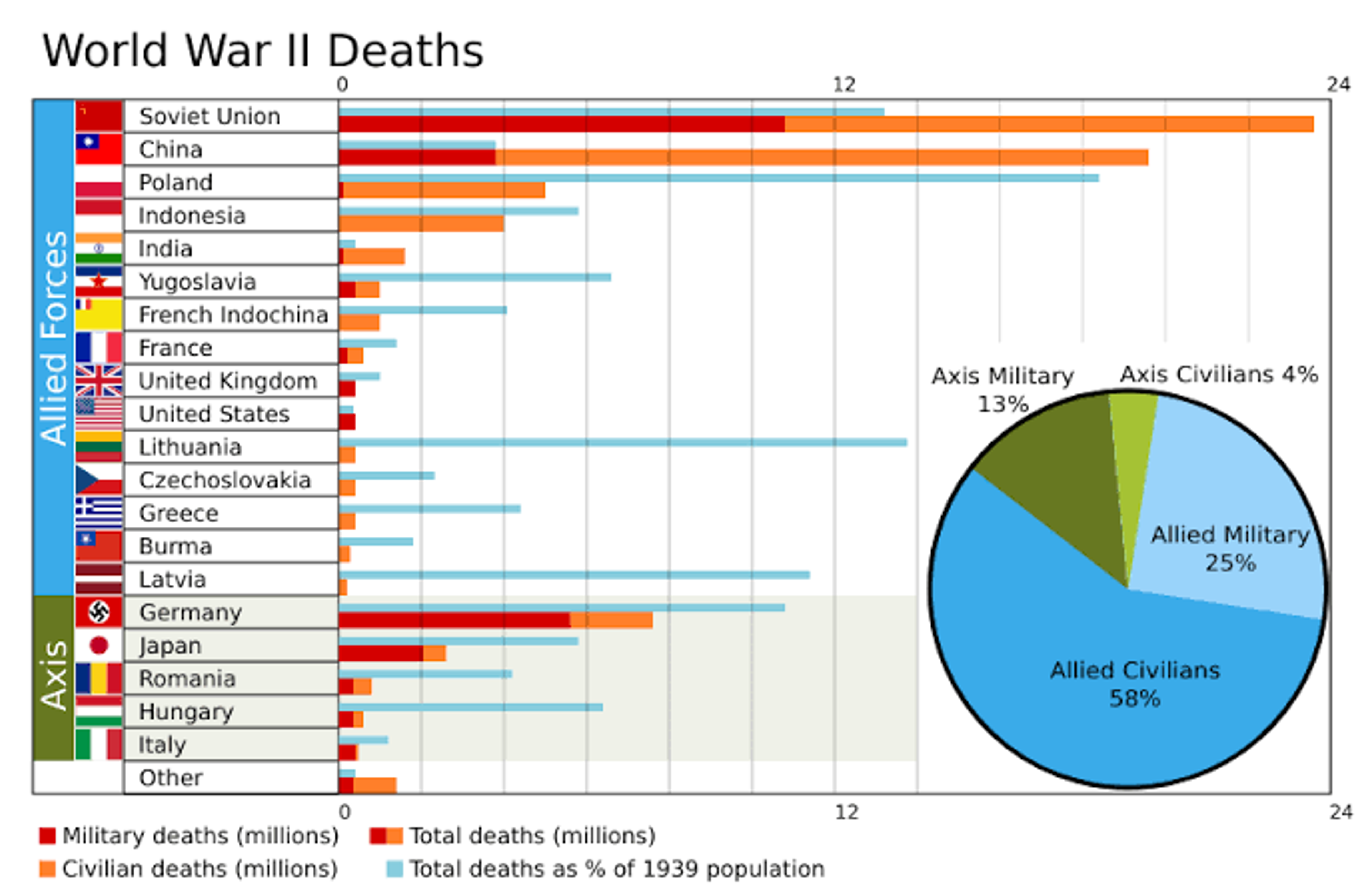 World War II lasted between 1939-1945 and involved the vast majority of the world’s countries, including the great powers. Driving social, political, technological and economical change at the same time, WW2 was the most destructive war in history. Fought between the Axis powers and the Allies, it roughly destroyed around 39 million lives. Physical capitals were destroyed, economical statuses changed, families separated for lengthy time periods, properties abandoned or given up without receiving any compensation, and hunger became common – heinous crimes against humanity were committed. The children lost all protection since the adults were either out for war or killed in it. Witnessing the horrors of war at tender ages was such an injury that would walk alongside them for life, physically as well as mentally. As estimated, around 60 million people died in WW2.